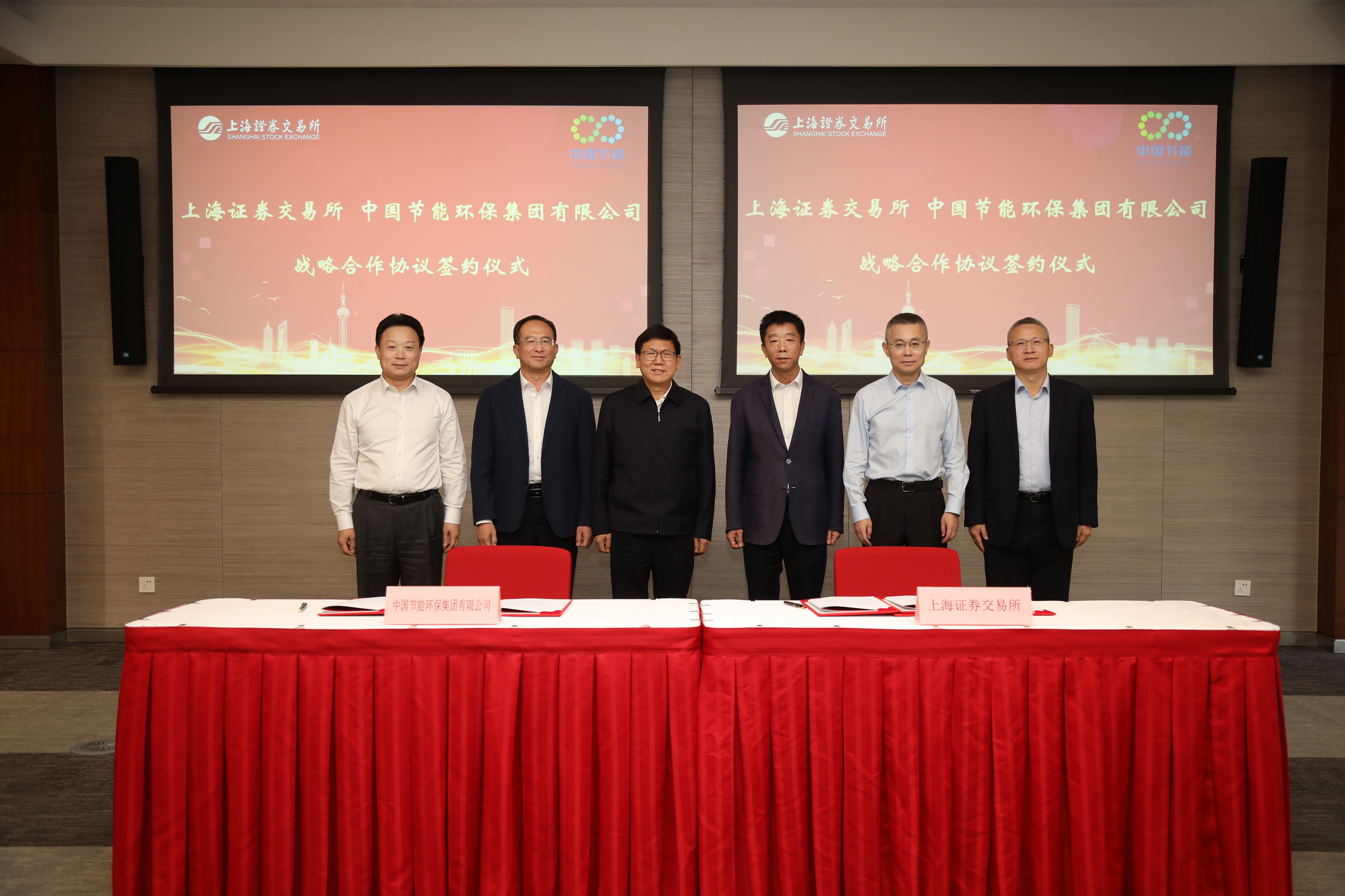 11月21日,中国节能与上海证券交易所在上海签署战略合作协议。集团公司党委书记、董事长廖家生和上交所党委副书记、总经理蔡建春共同见证签约并举行工作会谈。集团公司党委常委、副总经理胡乃民、曹华斌和上交所党委委员、副总经理王泊参加活动。